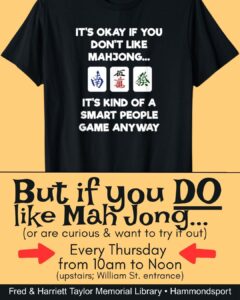 Curious about Mah Jong? Want to learn or already know how to play? Join us on Thursdays for a few games & some fun banter.
